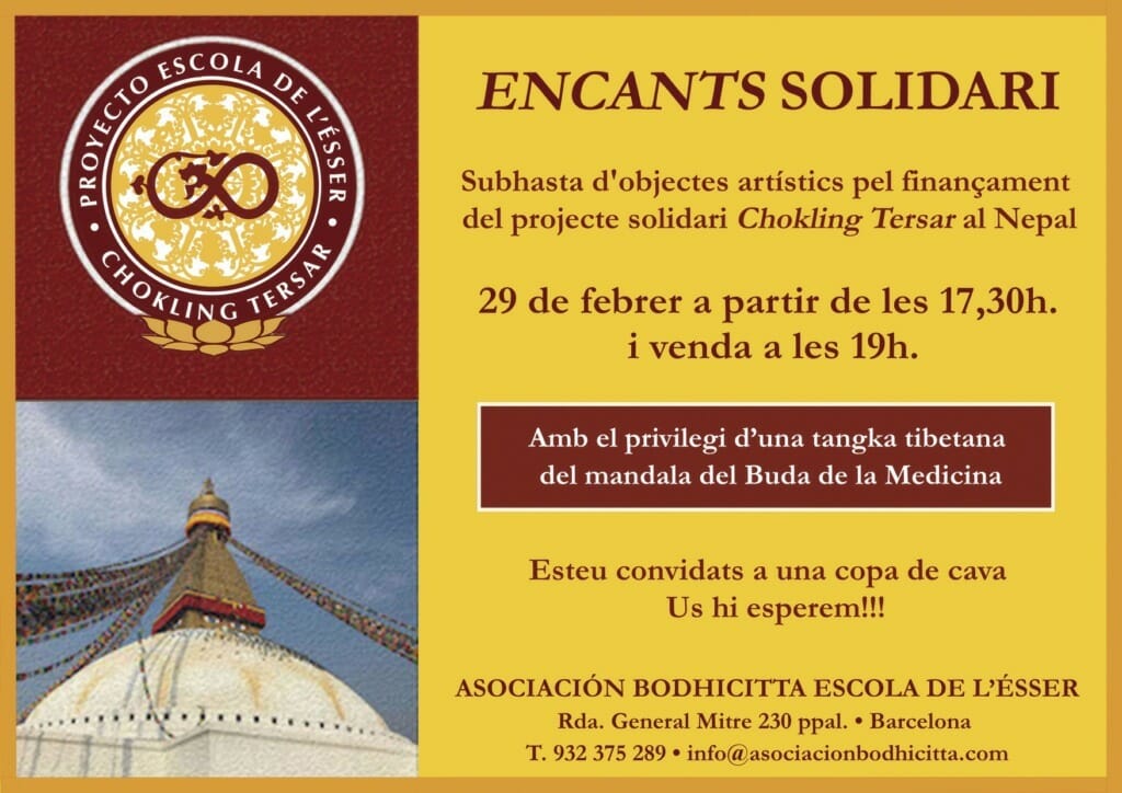 La Escola, con sus mejores galas, este pasado sábado día 29 de febrero abrió sus puertas para llevar a cabo el primero de los actos creados para financiar el «Proyecto Solidario «Escola de l’Ésser – Chokling Tersar»…el «Mercadillo Solidario».